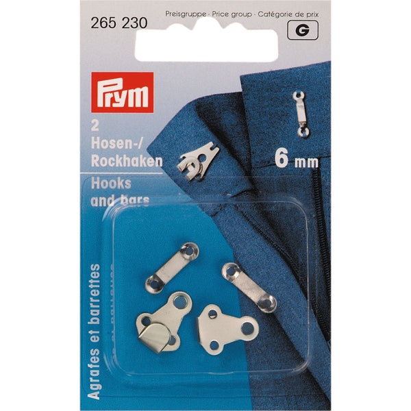 Prym Trouser And Skirt Hooks/Bars 6mm Silver Colour