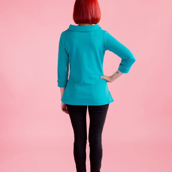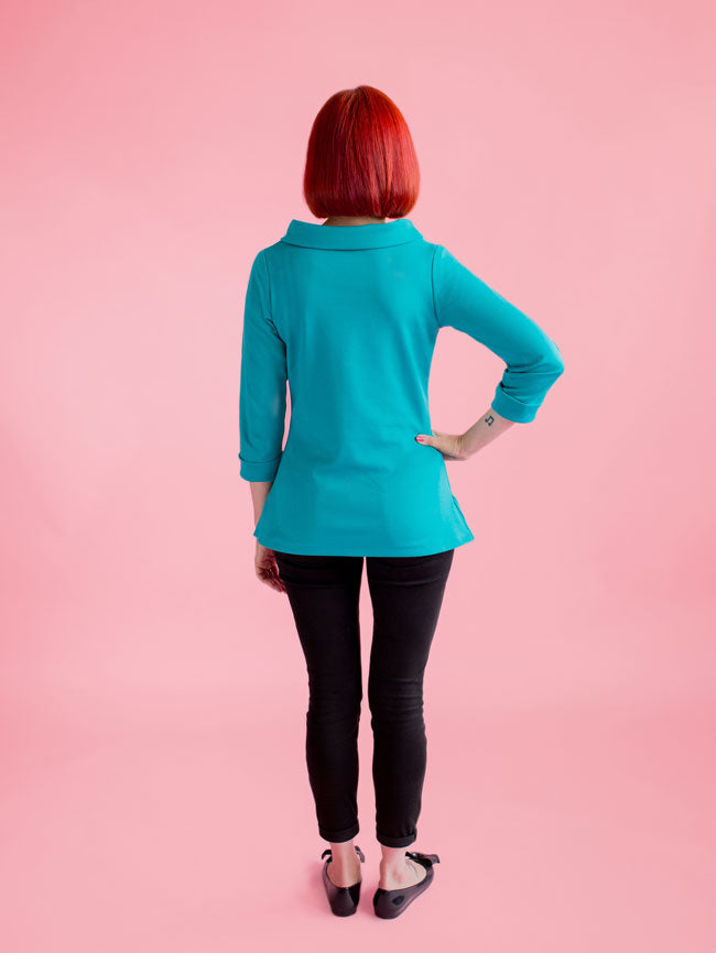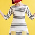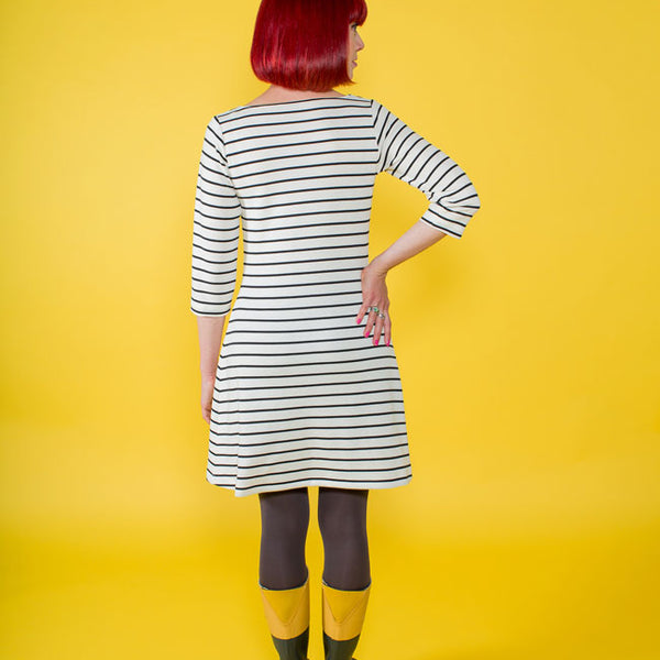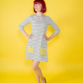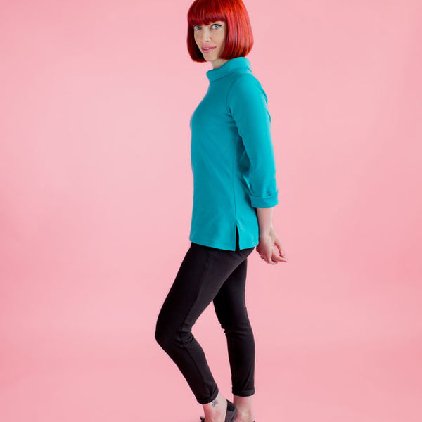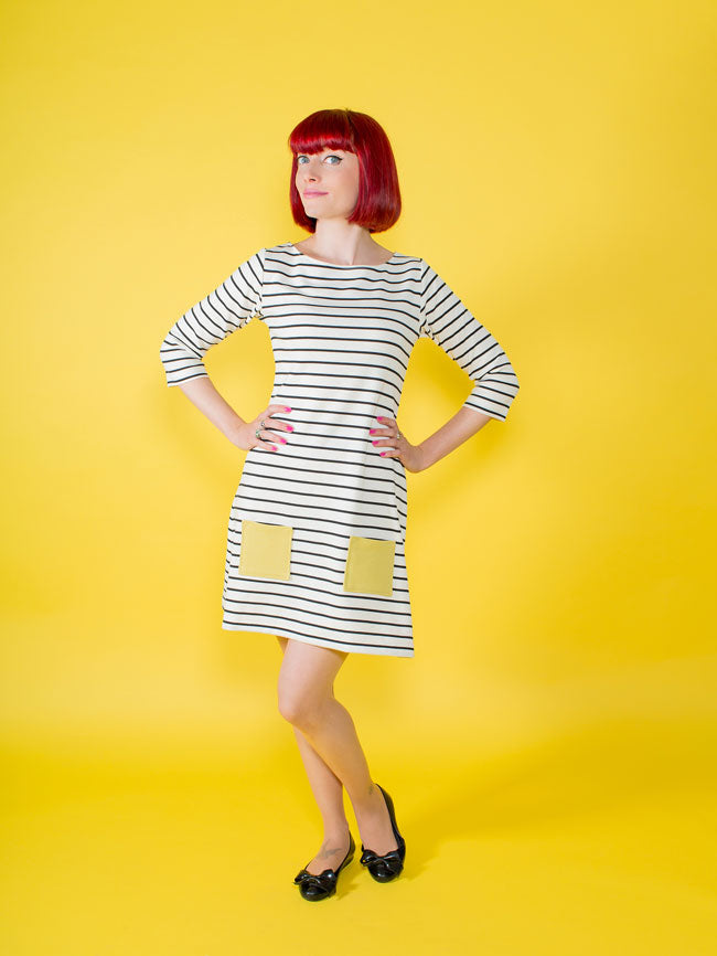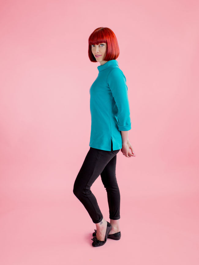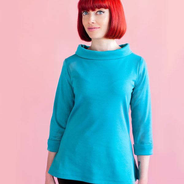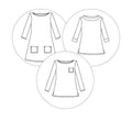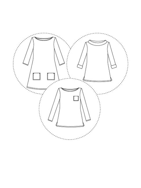 A year-round staple that's so easy to wear‚ Coco makes a great spring marinière top‚ summer tunic‚ autumn funnel neck or cosy winter dress. Designed for low-stretch knit fabrics‚ the classic style features a boat neckline‚ choice of top or dress lengths‚ three quarter length or long sleeves‚ with side splits at the hips on the top version. Make it your own with optional sixties funnel roll neck‚ rolled cuffs and patch pockets.