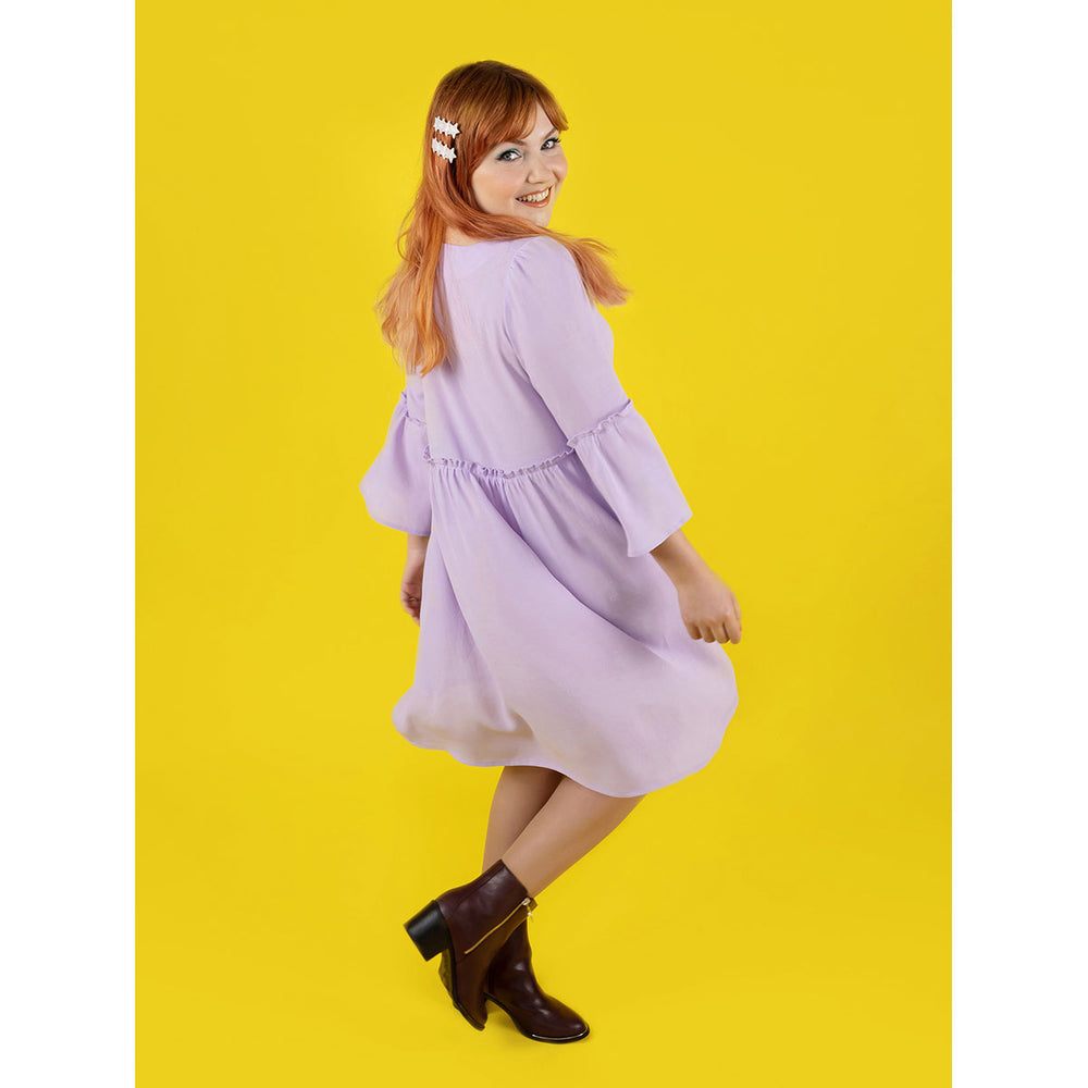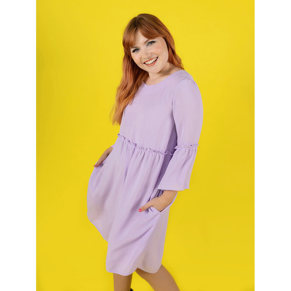 Indigo has a bodice shaped with bust darts‚ gently curved empire waistline‚ and floaty gathered skirt. Make it as a top with dipped hem ending at the low hip‚ or a knee-length dress with straight hem and pockets (yay!). Choose from three-quarter flounce sleeves or slim-fitting bracelet sleeves. You’ll want to wear one every day of the week.