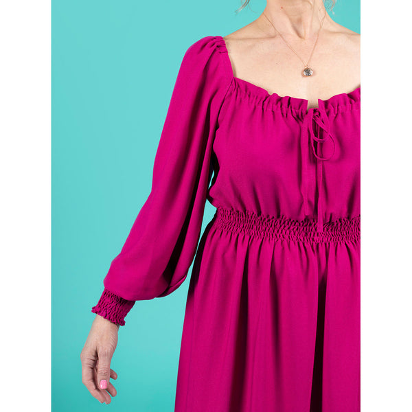 Get ready for all the compliments with this dreamy dress or blouse with shirred waist and cuffs.