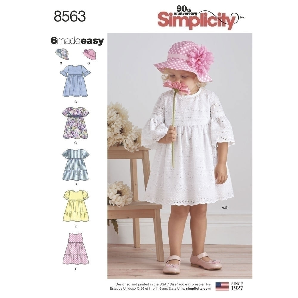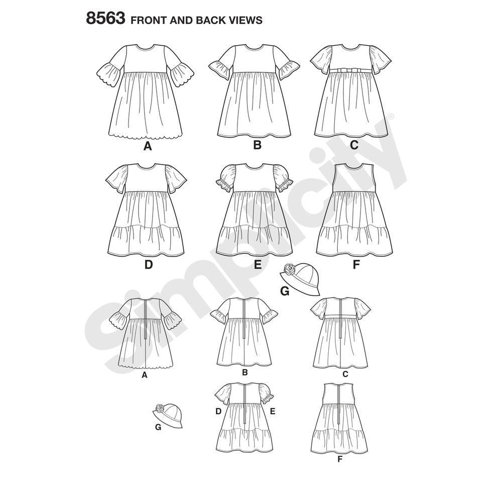 Toddler Dresses and Hat Simplicity Sewing Pattern 8563. Age 6m to 4y.
