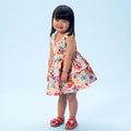 Pullover top and dresses have self-lined upper sections‚ raised waist‚ gathers‚ adjustable‚ concealed back button shoulder straps‚ and narrow hem. A and B: ruffles. A‚ B‚ C (optional)‚ D: bows and knots. D and E: snap tape closing. Purchased optional appliques C‚ and trim E. Panties have elastic waist. D and F: elasticised leg openings.