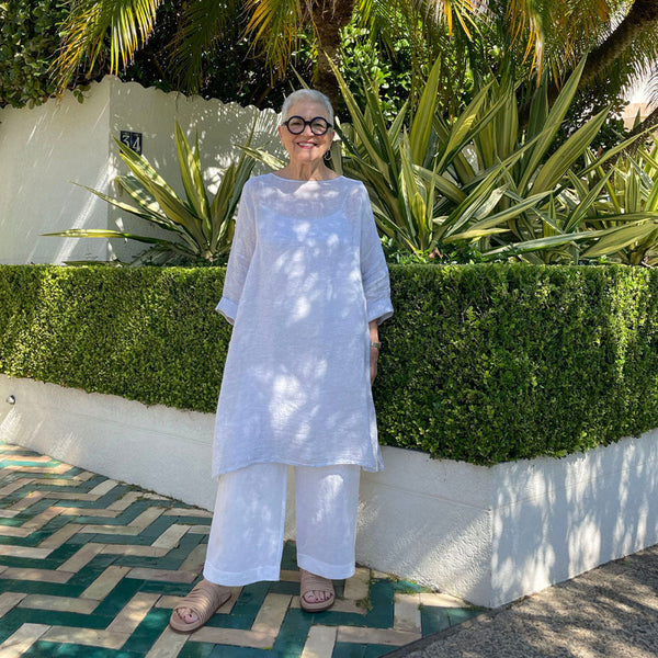 The Tosca Tunic is a slightly flared style with a loose and comfortable fit. It features a wide bound neckline‚ drop shoulders‚ deep armholes‚ bracelet length sleeves‚ side slits and narrow hems. This simple style can be made as a short or long tunic and makes a great shift dress‚ beach cover up or relaxed tunic top layered over pants.