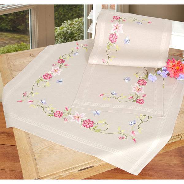 Vervaco Flowers and Butterfly Embroidery Tablecloth Kit