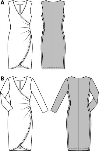 Wrap-Effect Jersey Dress with Gathered Side Burda Pattern No. 6829. Size 8-18.